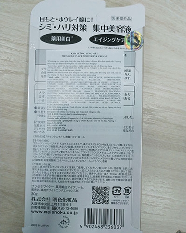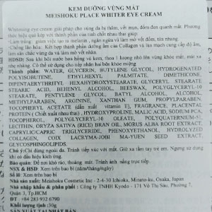 Kem Dưỡng Vùng Mắt MEISHOKU Placewhiter Eye cream 30g đã và đang là sản phẩm rất HOT của hãng mỹ phẩm Meishoku Nhật Bản. Chính vì thế mà hiện nay trên thị trường xuất hiện tình trạng HÀNG GIẢ, HÀNG NHÁI mang danh nghĩa hàng xách tay tràn lan, gây hoang mang cho người tiêu dùng.