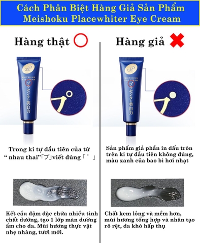 CÁCH PHÂN BIỆT SẢN PHẨM “KEM DƯỠNG VÙNG MẮT MEISHOKU PLACEWHITER EYE CREAM 30G” THẬT/ GIẢ