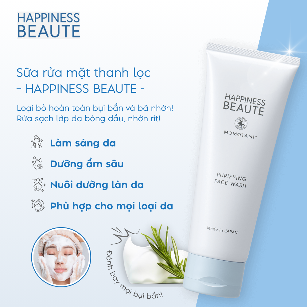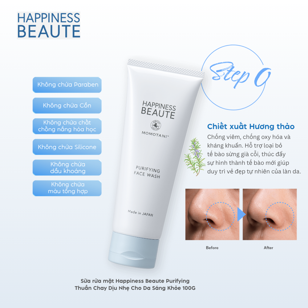 Sữa rửa mặt Happiness Beaute Purifying Thuần Chay Dịu Nhẹ Cho Da Sáng Khỏe 100G